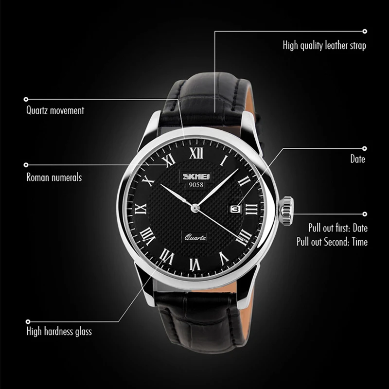 Skmei Pria Quartz Jam Tangan Mewah Jam Tangan Pria Kulit Asli Tali