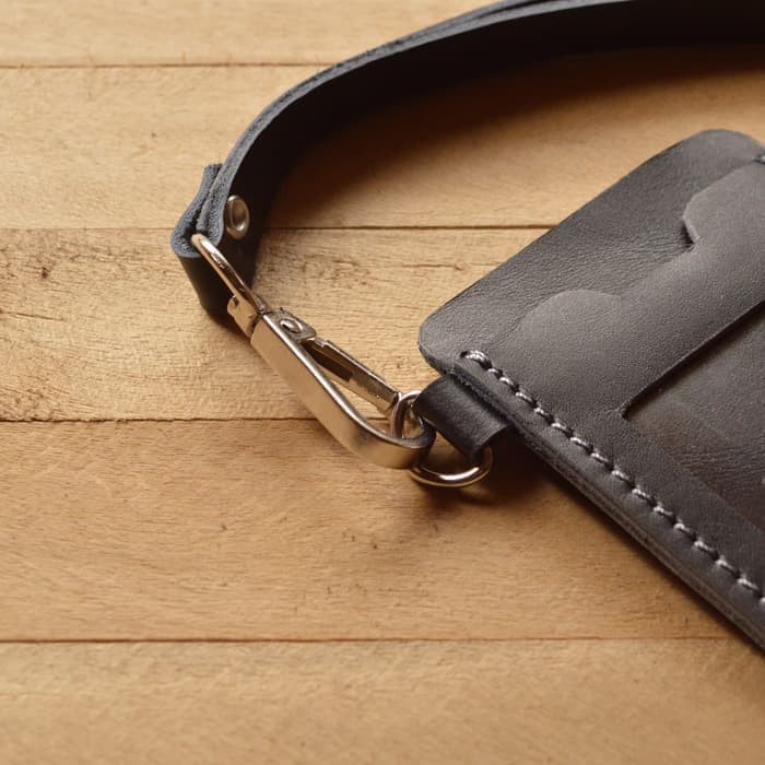 Adalah sebuah benda yang di pakai untuk mengikat antara kartu identitas dengan lanyard tali id card yang terbuat dari kulit baik menggunakan jenis kulit hewan asli atau pun kulit sintetisgantungan id card kulit custom bisa di buat seperti tali pengikat atau casing.