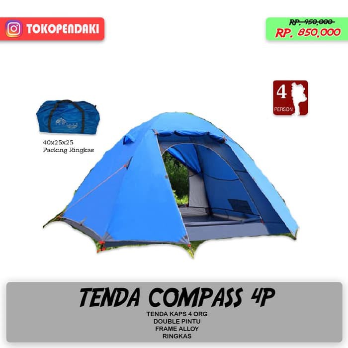 Jual tenda gunung merk compass kap 4p frame alloy dengan harga rp747000 dari toko online aev adventure jakarta utara.