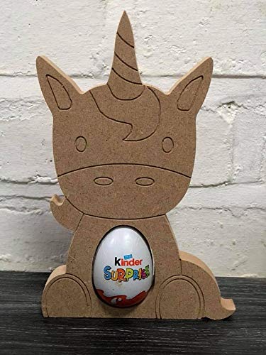 Made from solid mdf thick wood the holder will stand alone and i will paint the bunny any colour you request and then hand decorate it to order. Unicorn kinder egg holder mdf shape easter gift for girls.